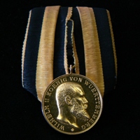 Links sehen Sie die sogenannte Tapferkeitsmedaille des Königreiches Württemberg, die